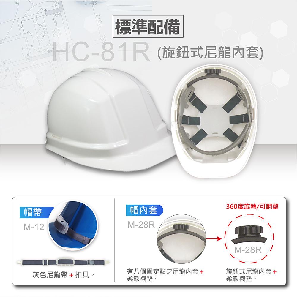 ◆ 標準配備:ABS工程帽+M12舒適性帽帶+扣具+M-28R旋鈕尼龍內套+柔軟襯墊(另有M28尼龍布內套可供選擇)